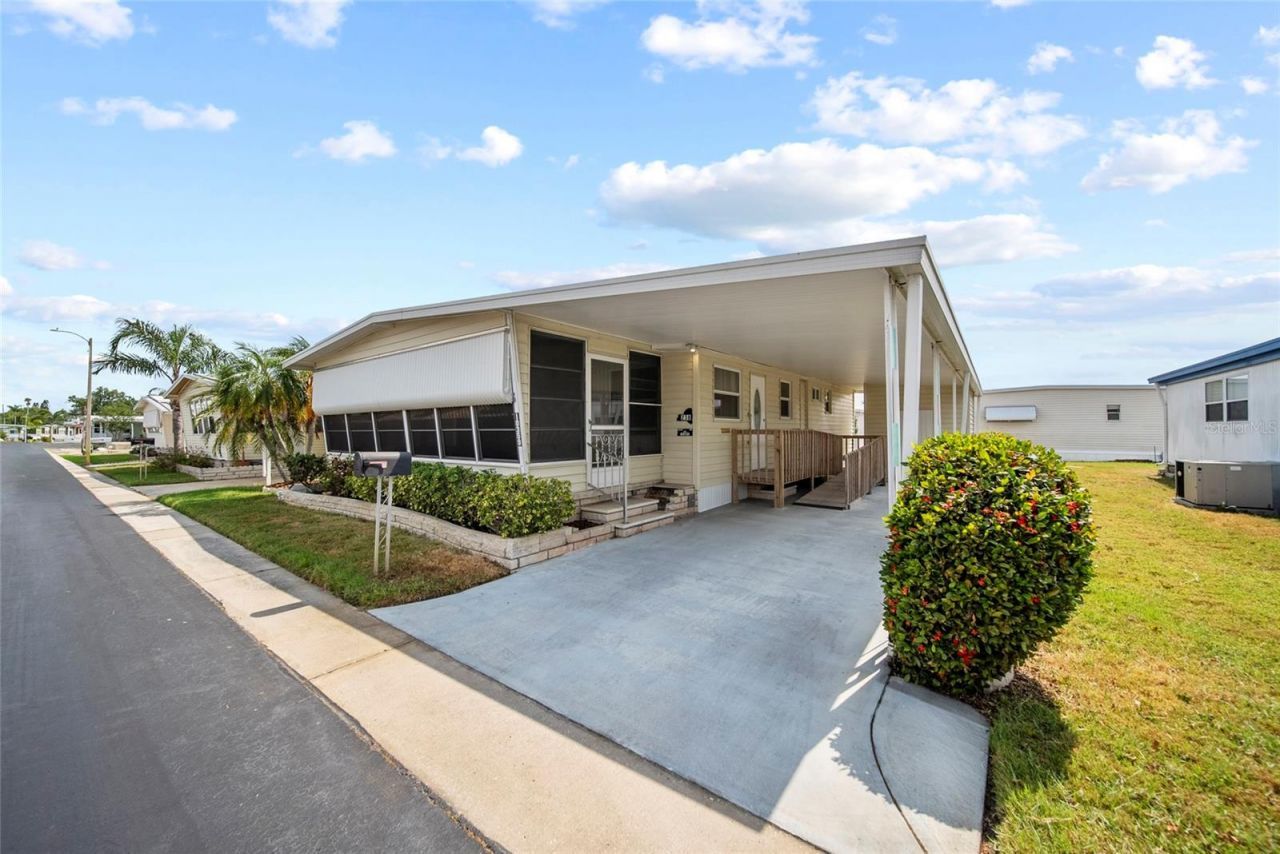 PRICE REDUCTION!! Very nice property located in beautiful Holiday Shores, a lakeside community with ALL major components of the home completed. Roof 2021, AC 2020, Vapor Barrier, 2020, Windows, 2019, Water heater 2022 and washer & dryer 2023. All this property needs is your updating touches. Although the square footage of the property is 816 sq ft., there is an additional 220 sq. ft sunroom with newer vinyl windows which could add to the square footage by simply installing a mini split or wall unit AC/Heat. The bones of this property are good with hurricane tie downs both in the carport area and underneath the home, as well as the newer components mentioned above. Holiday Shores is centrally located to the Tampa and St. Pete Airports) approx. 30 minutes, our beautiful beaches only a 10-minute drive, and all the shopping and restaurants you could ask for! We are a much desired 55+ Park, with boating (boat slips, 1st come, 1st serve), fishing, kayaking, we have a private boat ramp, shuffleboard, various activities and events, a heated pool, a chip and putt putting green, a small park with a gazebo and all of this for the low monthly maintenance fee of $190.00 per month which includes water, sewer, trash pickup x2 plus lawn mowing.