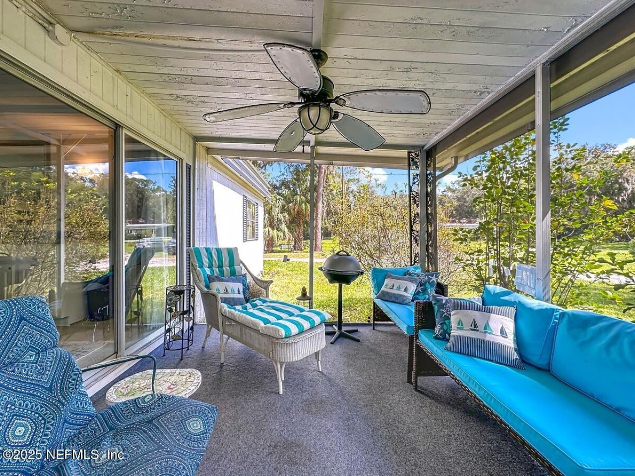 Welcome to this charming 2-bedroom, 2-bath mobile home perfectly situated on a desirable corner lot with great visibility. Inside, you'll find a comfortable living room and a layout designed for easy living. Step out onto the screened porch and enjoy scenic views of the community pond and the St. Johns River. No HOA, no lot rent.Practical features include a concrete driveway, covered carport parking, and an additional screened room-ideal for relaxing or entertaining. An outside storage room with laundry area for convenience and functionality.Residents benefit from a flat-fee, mandatory $112.00 monthly water fee, covering water service for peace of mind. This property offers the perfect blend of comfort, convenience, and scenic surroundings along with recreational opportunities nearby including fishing, boating & river-access given close proximity to the St. Johns River