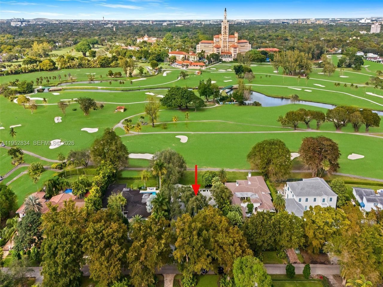 Welcome to Villa Mariola, located in Coral Gables, a beautifully reimagined 1940 residence showcasing Streamline Moderne grandeur, perfectly positioned across the green from the Historic Biltmore Hotel. Set on a slightly elevated site, lush subtropical landscaping frames a commanding backdrop, the Biltmores iconic tower rising above the golf course, an unforgettable Mediterranean Revival landmark built in 1926.Designed to celebrate the view, Villa Mariola features expanded doors and windows oriented toward the Biltmore, capturing its morning light and evening glow from throughout the home. Interiors have been thoughtfully refined to create a cohesive narrative, pairing Coral Gables-inspired materials with modern enhancements for todays living.The floor plan unfolds as a sequence of framed vistas, with nearly every room opening toward the Biltmore, while others borrow brilliant natural light through carefully placed openings. Outdoor living is equally compelling, with a resort-style setting that balances leisure and perspective, a pool positioned to span the Biltmore on one side and a loggia on the other, echoing the timeless rhythm of the hotels arcades and verandas across the fairway.Villa Mariola is a rare dialogue between past and present, honoring one of Floridas most treasured architectural icons while delivering a refined, contemporary lifestyle in the heart of Coral Gables.