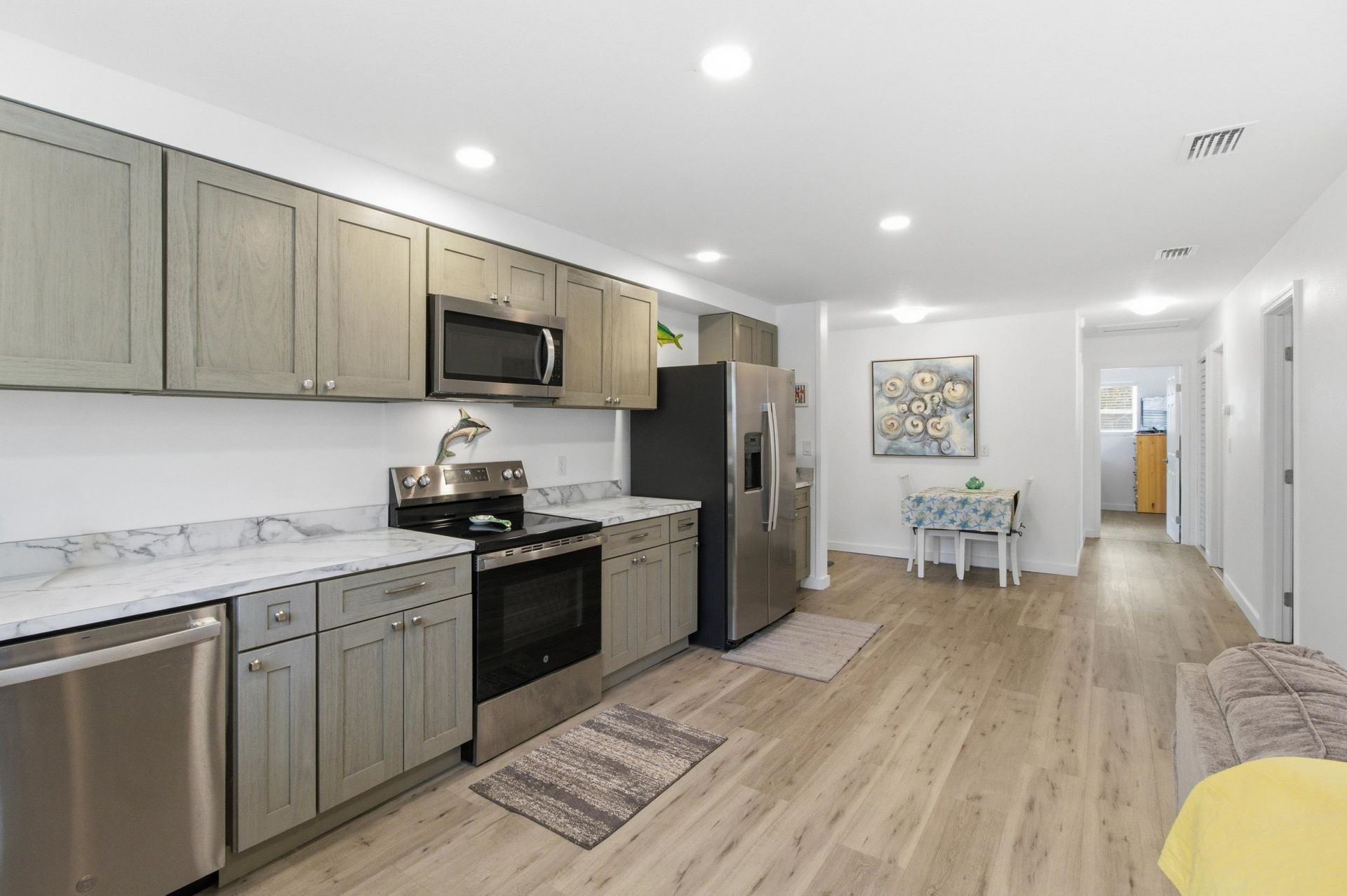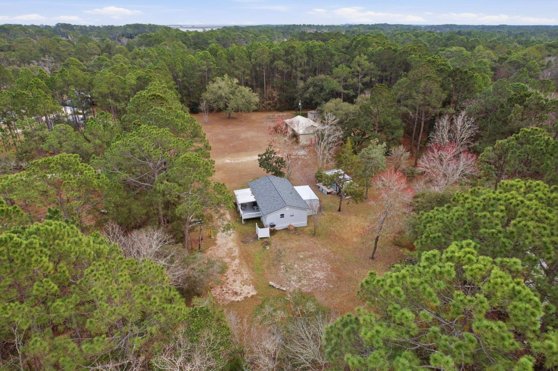 Beautifully renovated 3-bed/2-bath home situated on over 1.09 acres. This property offers a unique retreat feel, complete with a spring-fed pond with bass, brim, and catfish. The lot features various fruit trees, including grapefruit, persimmon, pear, and loquat. The recently renovated home features high-quality upgrades including solid wood cabinetry, vinyl plank flooring throughout, tile walk in bath, insulated interior walls, new roof, new AC system, and all-new appliances. This home is move-in ready or would provide an excellent rental or Airbnb. The house is currently furnished. Furnishings considered with reasonable offer. The Dickerson Bay boat launch is within a mile of the property.