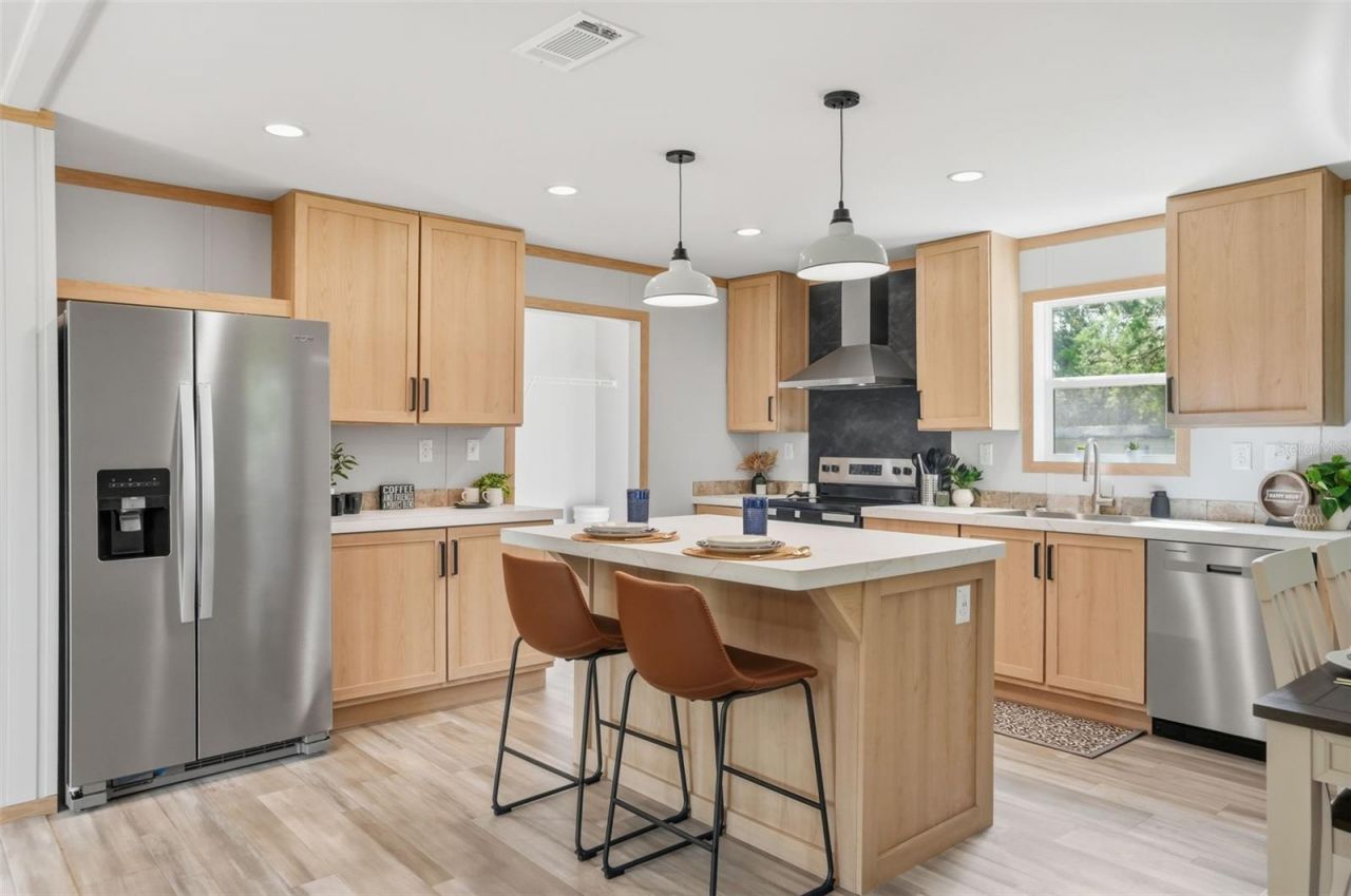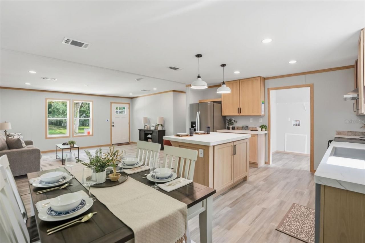 MOVE-IN READY!! BRAND NEW PALM HARBOR HOME!! 3 Bedrooms + 2 Bathrooms + STUNNING PRIMARY SUITE with Freestanding Soaker Tub, over 1/4 acre lot + on a paved road with Beautiful Mature Oak Trees and NO HOA and NO LOT RENT!! You own the land!! Everything is NEW!!This stunning brand-new, well-built, double-wide Palm Harbor manufactured home has a full finished drywall interior, 2 x 6 (not 2 x 4) exterior framing with triple studs at all exterior openings, 2 x 8 floor joists; feel the difference when you walk inside! Even the skirting on the home meets the highest standards of quality constructed of solid cement board. The home sits on .29 of an acre of beautifully landscaped land in peaceful Brooksville - and best of all, NO HOA...so bring your boat, camper, ATV, pets, bring it all!Boasting 1,440 sq ft of thoughtfully designed living space in the new warm earth tones, this home offers a large open floorplan with the kitchen open to the dining room and great room making this home feel incredibly spacious, light, bright, and cheery. Great for entertaining family and friends!! The home is loaded with upgrades, including luxury vinyl plank flooring throughout (no carpet), making it as stylish as it is low-maintenance. Even the skirting on the home is the Step into the designer kitchen, where no detail has been overlooked. You'll love the expansive center island with breakfast bar, perfect for extra seating!! The kitchen features all-new stainless steel appliances, with an extra upgraded range hood with designer backsplash (the focal point of the kitchen), real wood shaker cabinets, gorgeous modern countertops, and designer lighting, sink, and faucets. Lots of beautiful countertop space and lots of cabinets for plenty of storage!The primary suite is a true retreat, featuring a spacious bedroom and a luxury en-suite bathroom you rarely see --- with a STUNNING modern standalone soaking tub, separate walk-in shower, dual designer sinks, and beautiful accent windows over the soaking tub that give the space an upscale, spa-like feel. This master bathroom is super spacious and truly an impressive upgrade for the home!! You'll want to show this off to your guests!!The second bathroom has a tub and shower combo with matching finishes giving that continuous feel throughout the home!! The 2nd and 3rd bedrooms are both a good size!!Everything in this home is BRAND NEW: new well, new septic with 2-year maintenance warranty, new HVAC, all new appliances, new water heater, and the home is covered by a 1-year manufacturer's warranty! Enjoy the peacefulness of the surrounding area, adorned with the iconic large live oak trees that Brooksville is known for. And when it's time to run errands or commute, you're just minutes from groceries, shopping, restaurants, and the Suncoast Parkway for easy access to Tampa and beyond. 30 minutes to sunsets at Pine Island, Buccaneer Bay Water Park, kayaking and paddle-boarding the crystal clear Weeki Wachee River, swimming with the manatees, boating and fishing in the Gulf of America! 40 minutes to Tampa for work and play!!Don't miss this rare opportunity to own a move-in ready home on land with all the benefits of new construction - and none of the restrictions! Schedule your private showing today and start living the Florida lifestyle you've been dreaming of!