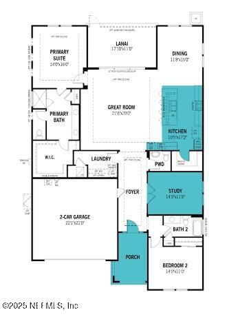Lot 130 - Discover the Aruba floorplan with a Coastal Elevation, where sophistication meets relaxed coastal living in an open-concept design. Just off the welcoming foyer, a Study in lieu of a Flex Room provides an ideal space for work or quiet retreat. The heart of the home opens to a spacious Great Room that flows seamlessly to the lanai, perfect for entertaining or enjoying the coastal breeze. A Gourmet Kitchen with a flush island breakfast bar and nearby Wet/Dry Bar makes hosting casual meals or elegant dinners effortless. The private primary suite offers a serene retreat with convenient access to the main living areas. Every detail reflects coastal elegance and thoughtful design. WATERSONG, an exclusive gated 55+ neighborhood within RiverTown, features parks, lakes, preserves, and miles of scenic trails along the St. Johns River, plus resort-style amenities, social events, and fitness activities for an active, connected lifestyle.