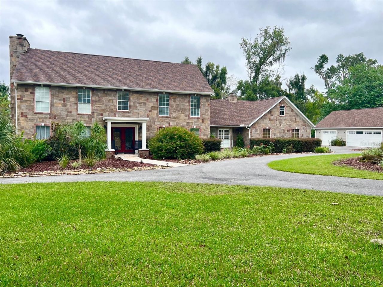 Welcome to this stately 2-story traditional home, built in 1982 and meticulously crafted with a blend of HardiPlank siding and stone for timeless curb appeal. Nestled on a spacious 1.65-acre lot, this residence boasts 4 bedrooms and 3 full baths, spanning approximately 4,092 sq?ft of refined living space.From the moment you enter, you're greeted by a grand foyer with a striking staircase that leads to two expansive upper-level bedrooms and an impressive primary suite.The primary suite offers a spa-inspired bath and generous walk-in closet. On the main level, The open-concept layout ensures seamless flow between the living, dining, and kitchen areas-perfect for both daily living and entertaining.The heart of the home-a well-appointed kitchen-features ample cabinetry, solid surfaces, a center island, with a 4 seat bar and breakfast nook.A formal dining room off the kitchen enhances your entertaining possibilities.With all-weather durability and elegant finishes, the exterior invites both tranquil retreat and grand outdoor gatherings. Imagine a covered patio overlooking manicured landscapes-ideal for enjoying Florida evenings.3-car detached garage with mezzanine.East-facing orientation for morning light.A blend of traditional craftsmanship and timeless finishes throughout.