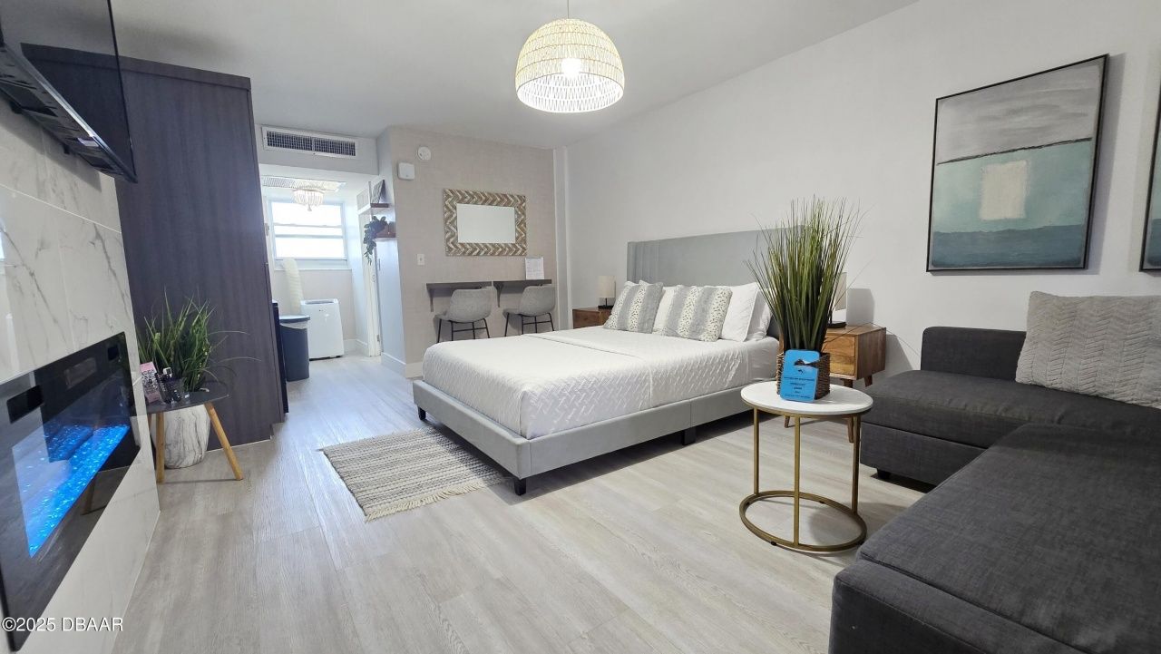 Completely renovated studio condotel. FULLY FURNISHED AND EQUIPPED. Everything has been updated and upgraded in the last few years. updated kitchen cabinets, gorgeous countertop, and back splash. Stainless steel sink. WOOD LOOK Vinyl throughout. UPGRADED LIGHTING. The bathroom has a stunning vanity, Updated SHOWER, toilet, lighting. Modern FURNITURE. YOU MUST SEE THIS UNIT. Oceanfront Pool. Maintenance fees include ALL Utilities (Water Sewer, Electricity, Cable, Trash, internet and AC Unit). Walking distance to the many amenities including theaters and shops at the Hilton, The Ocean Center, The Peabody Auditorium, Water park and many others. This building is on non drive beach.