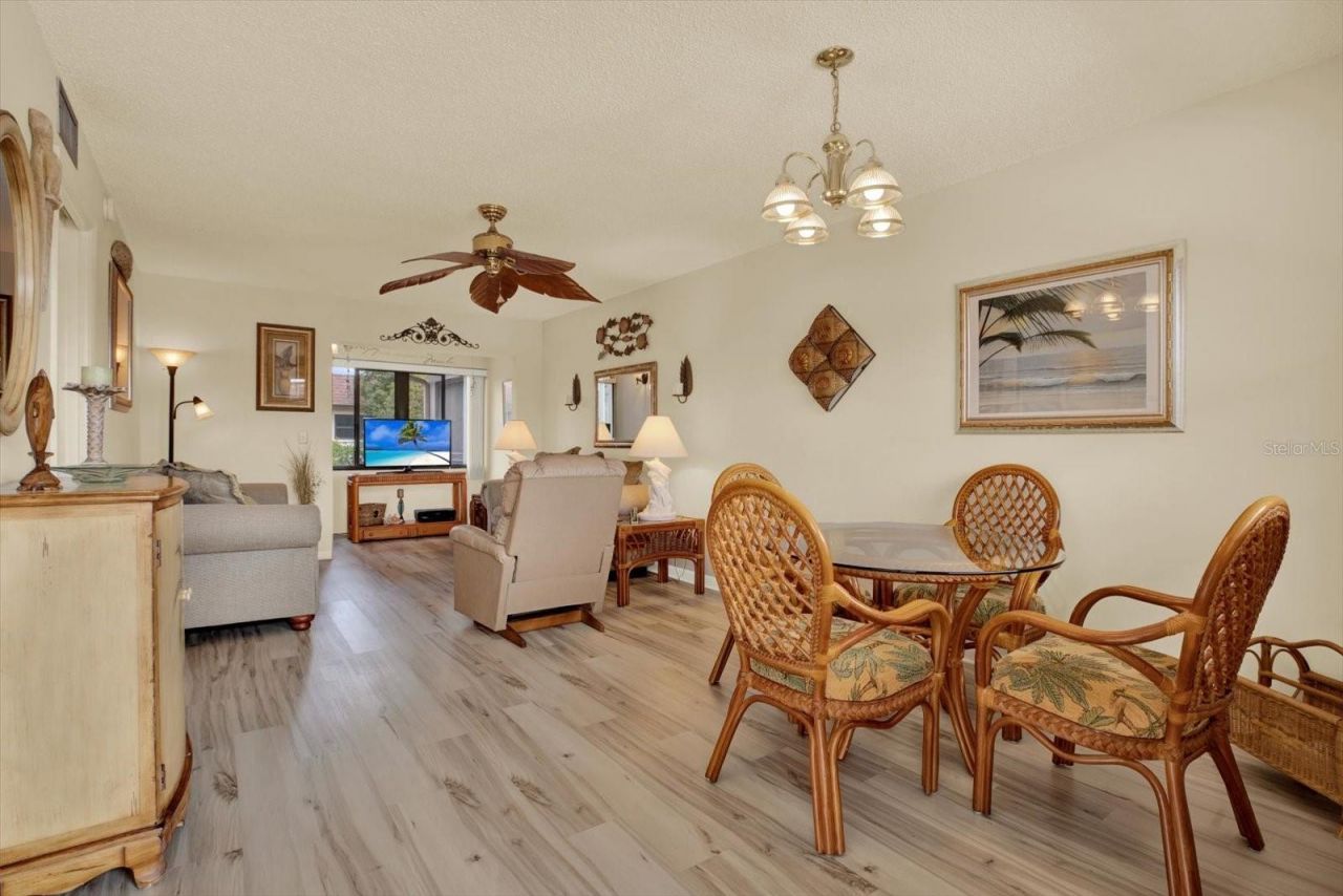 Enjoy true Florida living just minutes from world-famous Gulf beaches, championship golf, shopping and eateries. This beautifully updated one bedroom, one bathroom residence is located in the welcoming 55+ community of Bay Palms. This second floor unit features a brand new HVAC system, a newer tankless water heater, and a private storage room that makes it easy to keep beach gear, bikes, or seasonal items neatly tucked away.Updated flooring flows throughout the living area and bedroom, complemented by soft neutral paint. The open living and dining space is ideal for everyday comfort or casual entertaining, with the kitchen thoughtfully tucked to the side to keep the space feeling open and connected. The bedroom is located right off the living area and offers a generous walk-in closet. Enjoy the convenience of optional turnkey furnishings, allowing you to settle in with ease. Simply bring your clothes and toothbrush and start enjoying the Florida lifestyle. Residents enjoy access to a community pool, shuffleboard, and a community room for social gatherings, along with a side gate that offers easy walkable access to neighboring shops. This is low maintenance living in a prime location, perfectly suited for relaxed coastal living year round or as a seasonal retreat.