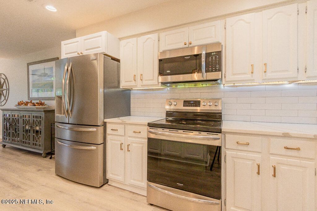 Great opportunity to own inside Sawgrass CC with stunning views of the golf course. Kitchen and bathrooms totally renovated. New LVF throughout this 2/2 condo. It is a quick walk to the community pool and the private Sawgrass beach access. Wonderful dinning & shopping nearby in Sawgrass Village. The vaulted ceilings give it a great open feel and updated fireplace adds to the charm. Storage shed that can fit a golf cart or all your beach gear. Could be a great investment opportunity and it can be rented weekly. Unit is being sold fully furnished.
