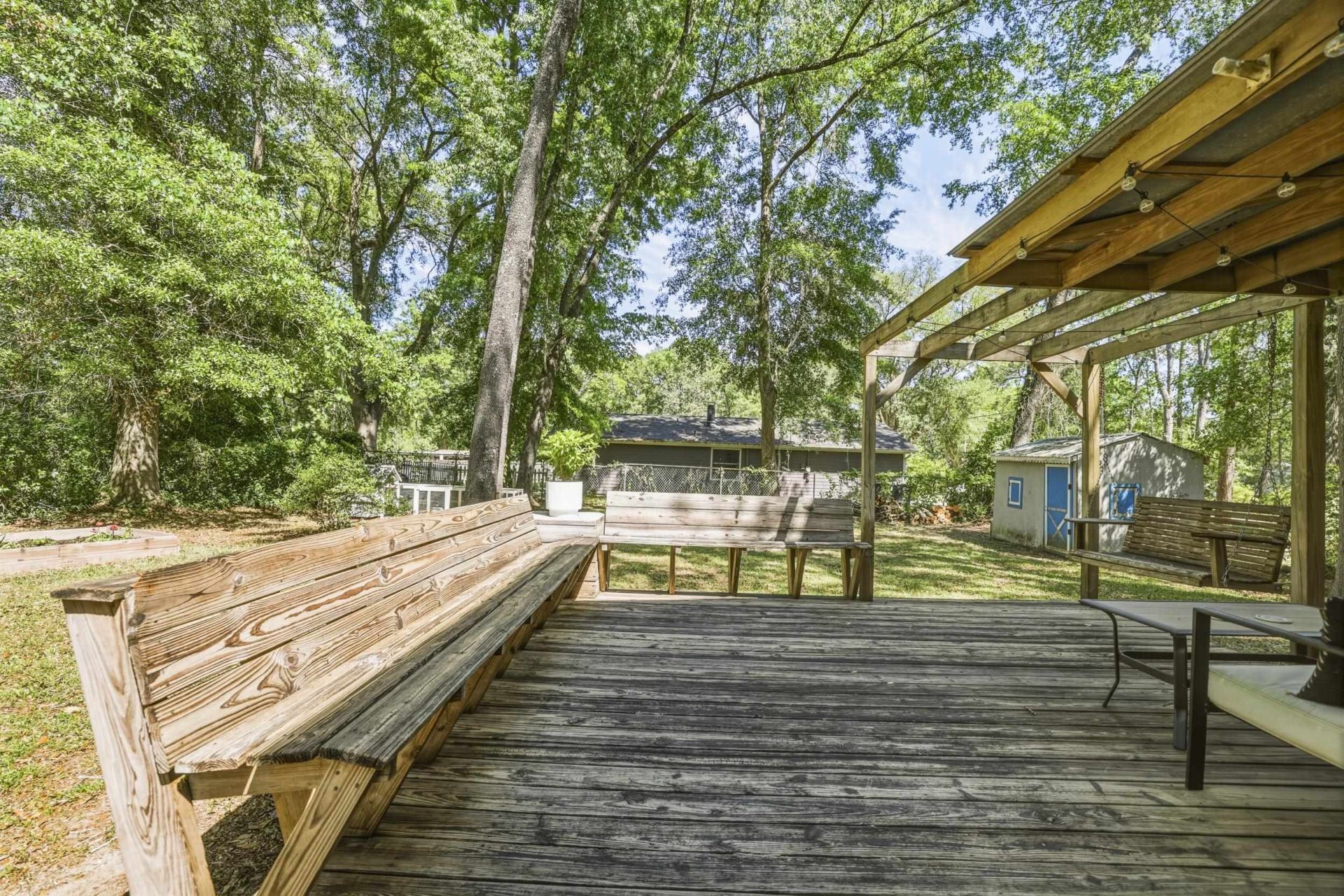 Flat, corner lot in desirable Killearn Acres. Two tile floor-covered living spaces, one of which is overlooking a brick hearth fireplace with glass door entry to one of the two back patios. Kitchen has white cabinets, stainless appliances and plenty of cabinet storage. Long dining nook allows for room for everyone to enjoy meals together. Enjoy fresh eggs from the hens in the backyard and take in the green screen of privacy in the back. Side entry garage has a ton of storage with separate laundry and storage nook. Loads of driveway parking. Between the nearby highly-rated schools and the close vicinity to Bannerman Crossing Shopping, the location cannot be beat. 2023 water heater & 2023 HVAC. 2016 windows.