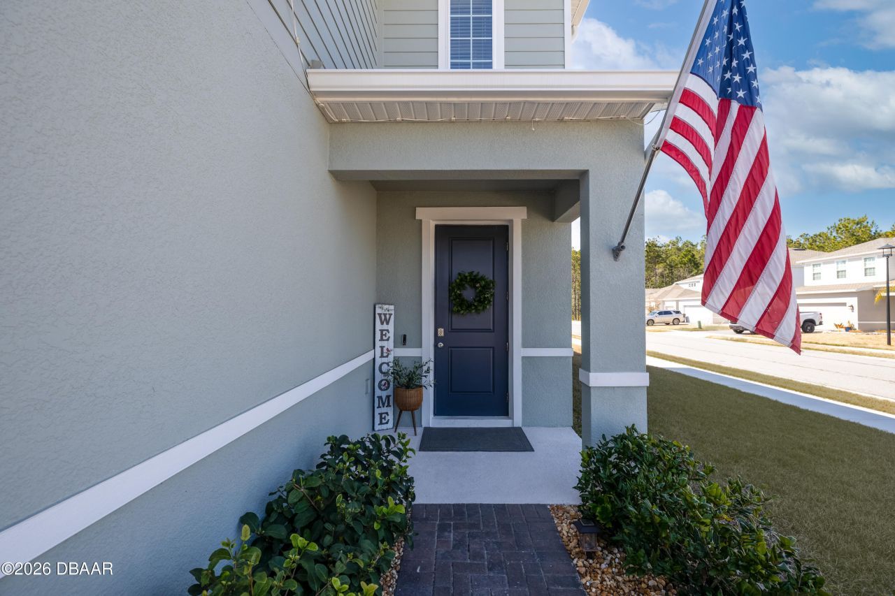 ASSUMABLE MORTGAGE OF $358,868 AT 5.75 PERCENT! Built in 2023, this stunning Glen Ridge model in the highly sought-after Eagle Crest community blends modern design, quality construction, and everyday comfort. Constructed with solid concrete block and equipped with hurricane-impact windows, this home offers both durability and peace of mind.Step inside to an open, light-filled living space with soaring ceilings and expansive windows that bathe the home in natural light. The main level features luxury vinyl plank flooring throughout, creating a seamless, stylish foundation for daily living and entertaining. The open-concept living and dining areas provide an inviting atmosphere perfect for gatherings or relaxed evenings at home.At the heart of the home, the kitchen impresses with granite countertops, stainless steel appliances, abundant cabinetry, and a spacious center island ideal for casual dining and hosting. Upstairs, three well-appointed bedrooms are complemented by a versatile loft spaceperfect for a home office, media room, or secondary living area.Outdoor living shines with a large covered porch featuring new vinyl finishes and private fencing, offering a serene space to relax or entertain. The air-conditioned garage adds exceptional versatility, ideal for a home gym, workshop, storage, or climate-controlled workspace.Eagle Crest residents enjoy beautifully maintained green spaces, a children's park, dog recreation area, and a scenic walking trail that winds around the community pondperfect for morning strolls and evening walks.With its modern construction, flexible floor plan, and prime location, this home presents an exceptional opportunity in one of Daytona Beach's most desirable neighborhoods.