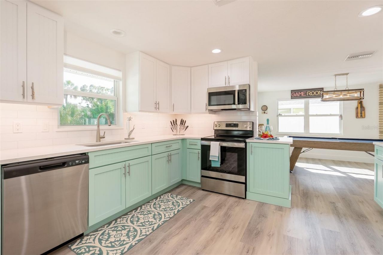 Welcome to paradise at Coco Cay! This beautiful 4 bedroom 4 bathroom home has been completely remodeled top to bottom. Brand new hurricane impact windows and doors, a new roof, kitchen, appliances, bathrooms, flooring, paint, furnishings, and even a new pool! This island oasis is move-in ready and only a few blocks from the world-famous beaches of Anna Maria Island. You will notice coastal d?cor as soon as you step into this island gem. The home provides a spacious open living area with teal accents, stainless-steel appliances, quartz countertops, and a game room conveniently adjacent to the kitchen with a pool table and dartboard. Outside you'll enjoy a screened in porch accessible from the living room, a seating area complete with a firepit, and a huge covered lanai for cooking and dining poolside. Weekly rentals are allowed. Make an appointment for your private showing and see what makes Coco Cay an excellent full-time home or investment property.