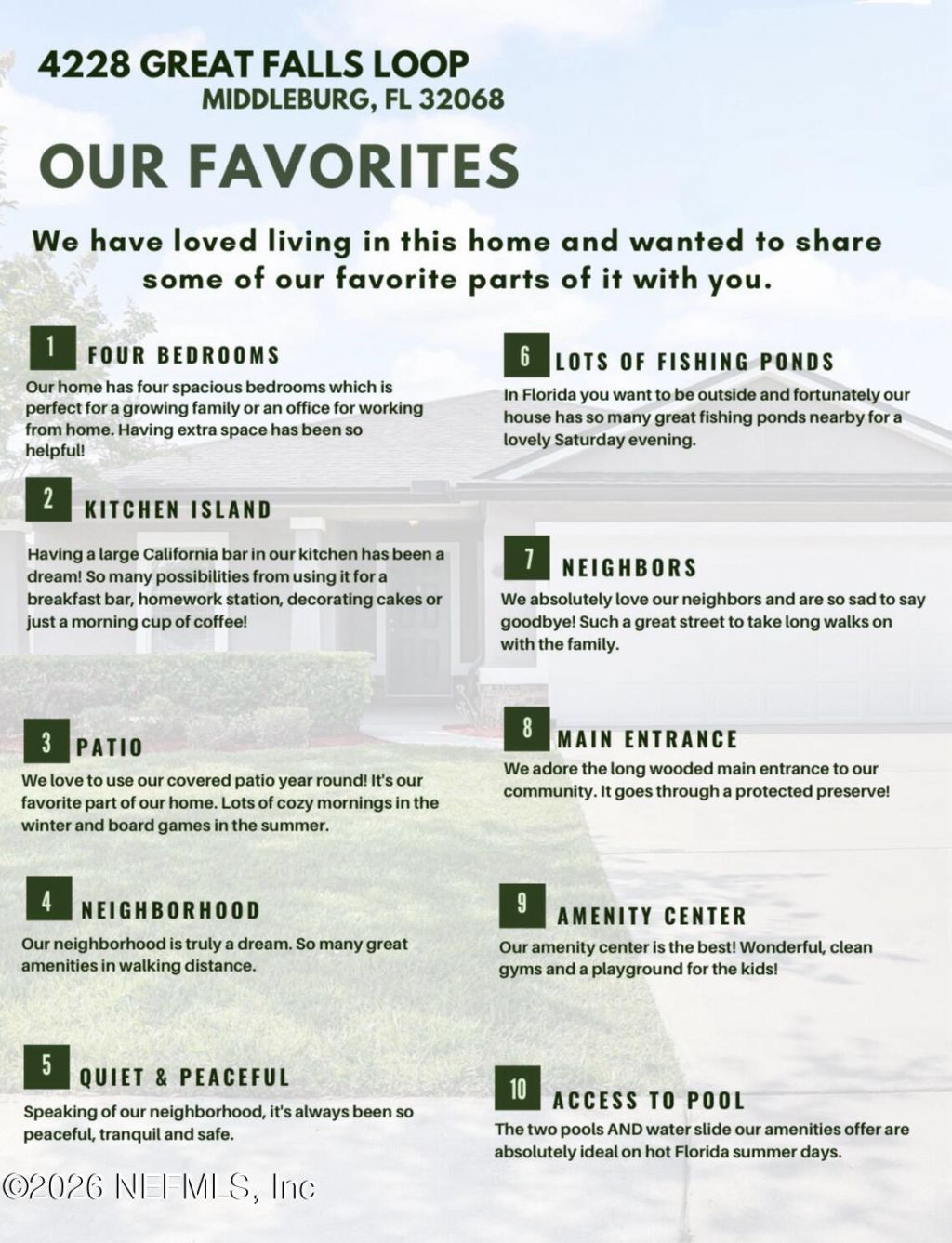 Enjoy resort-style living in bustling Middleburg! This spacious home has lots of upgrades, including flooring throughout the entire home - no carpet! It also features a large California bar in the kitchen, an enclosed patio for year round relaxing, four spacious bedrooms, plus extra flex space in the living room for whatever you need it for! Lots of updates, too - house was repainted in 2021, gutters were added in 2021 and a rescreened patio room. ! The community is fun and friendly and you'll have access to two pools, a waterslide, gym and playground. Plus, you'll benefit from Clay County's A rated school system. Welcome home to your new oasis!