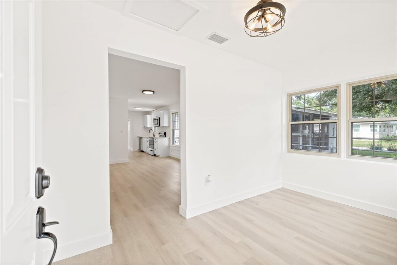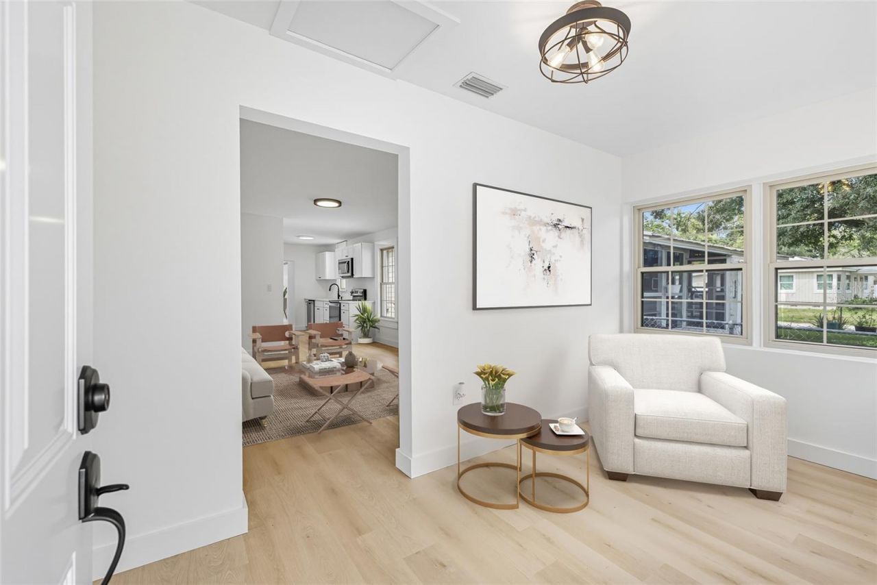 One or more photo(s) has been virtually staged. Welcome to this beautifully renovated 2 bedroom, 2 bathroom home that blends modern upgrades with cozy charm - all not in a flood zone! From the moment you arrive, the home's inviting curb appeal sets the tone. Step through the front door into a welcoming foyer, which opens into the living room, perfect for relaxing evenings. The open-concept layout leads you seamlessly into the fully updated kitchen, complete with brand-new cabinets, countertops, and stainless steel appliances. Just beyond, the dining area offers a great space to enjoy meals with friends or family. The primary suite is light-filled and generously sized, boasting a sleek en suite bathroom. The guest bedroom is equally bright and airy, with a full guest bathroom nearby. For added convenience, there's an indoor laundry closet for easy access. Out back, you'll find a private driveway leading to a detached one-car garage, plus a patio area that's ideal for outdoor dining and entertaining. Major updates include a new roof, new HVAC system, and a new water heater-giving you peace of mind for years to come. Located less than 10 minutes from downtown St. Pete and close to beaches, shopping, dining, and local attractions, this move-in ready home is the perfect blend of style, function, and location. Don't miss it!