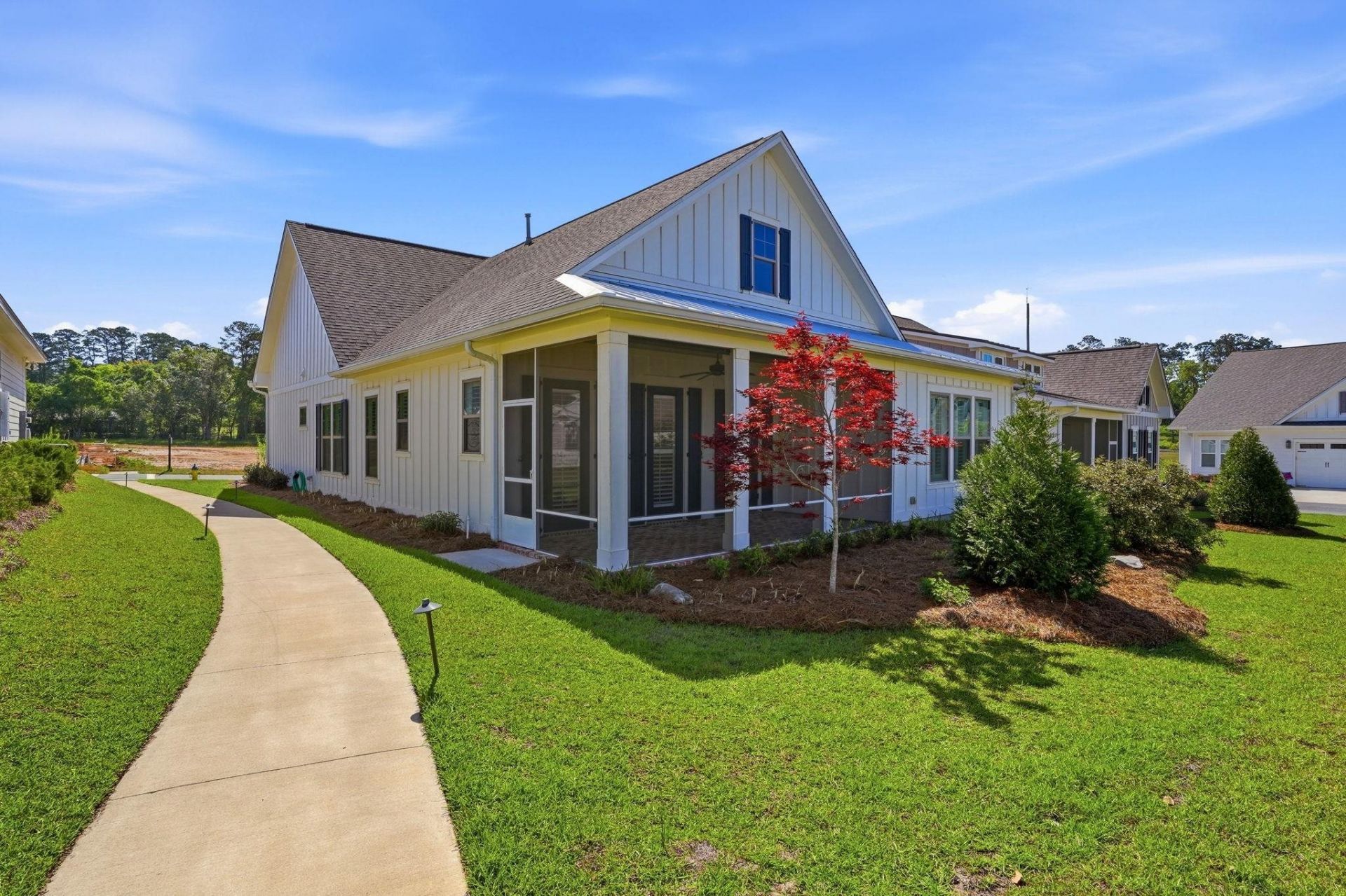 Set within one of Tallahassee's most desirable 55+ communities, this home offers a lifestyle centered around ease, connection, and beautifully maintained surroundings. Residents enjoy access to a private clubhouse, fitness centers, lap pool, pickleball and bocce courts, along with walking paths, garden parks and 100 year old oaks woven throughout the community. Inside, the 3-bedroom, 2-bath layout is bright and welcoming, with large windows and plantation shutters allowing natural light to fill the main living spaces. The open-concept design connects the living and dining areas to a functional kitchen with ample cabinetry and workspace, making it comfortable for both everyday living and entertaining. The primary suite offers a spacious retreat with a private bath featuring dual vanities and quartz countertops, along with a walk-in closet complete with custom wood shelving. Two additional bedrooms provide flexibility for guests, a home office, or additional living space. The screened porch creates a seamless transition to the outdoors, complemented by remote-controlled sun screens. Located on a quiet street, this Willow floor plan offers a peaceful, park-like setting, designed for scenic strolls just outside your door. Features Include: stainless steel appliances, quartz countertops, walk-through pantry, custom wood closets throughout, built-in bookshelf in guest bedroom, custom trim details throughout, 10 foot ceilings, 8 foot doors, engineered hardwood floors, gas Rinnai hot water heater, upgraded landscaping, remote patio screens, antique brick patio, wired for security, and epoxy-finished garage floor.