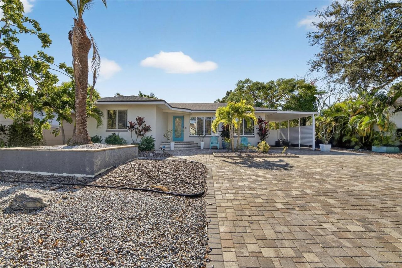 CHARMING GULFPORT HOME with a CASITA and a POOL. Literally, down the street from Stetson University College of Law. The brick paved street with a beautifully landscaped median coupled with this home's tropical landscaping and oversized paved driveway is ever so inviting. The transformation of this property is a must see! Once inside your eyes will be drawn to the blonde hardwood flooring in the formal living room. All bedroom closets have been customized for maximum storage. Both the primary bath and guest (full) bath's tile work is most impressive. Wedgwood blue kitchen cabinets are striking next to the stainless steel appliances, dishwasher and refrigerator recently upgraded. The butcher block island makes meal preparation/serving an ease with the adjoining formal dinning room. Continue your entertaining into the spacious family room or step outside to relax by the pool with a very generous area for seating or unwind in the hot tub. To further enhance your entraining, a casita is in your backyard. Provide your guest with the detached suite that features a vaulted ceiling, one bedroom, a full bathroom, a living room with french doors and a kitchenette. The roof was replaced in 2022 and the backyard is completely fenced. While this home is tucked in a gorgeous neighborhood it is also conveniently located: cyclist and runners will enjoy picking up the Pinellas Trail just 10 blocks north of the home, beachgoer's will appreciate less than a 5 minute drive to Gulfport Beach or a 10 minute drive to St Pete Beach, and travelers are thrilled that Tampa International Airport is 30 minutes away. This home has it all, location and charm.