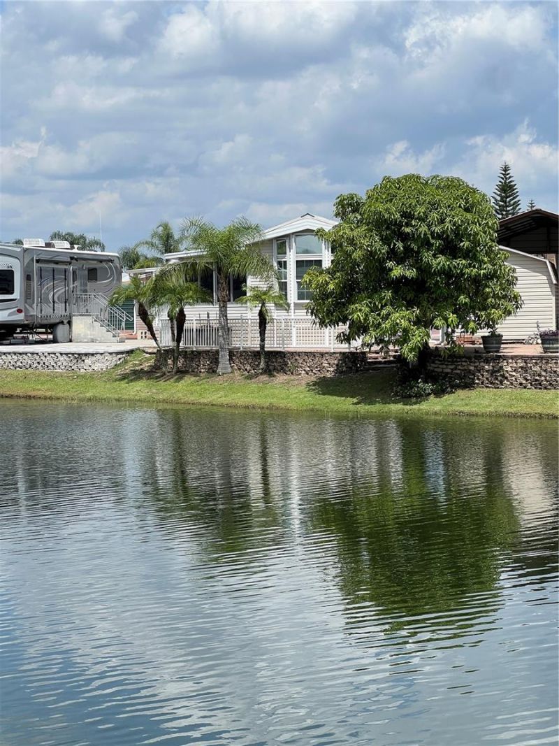 ~Big O RV Resort~55+. Active Lifestyles in a gated community, One owner custom made Chariot Park model with a custom Sunroom (Hurricane wind rated) by one of the best builders around the lake! 1B 1.5 Baths (Could be a 2 bedroom) Located on a lake with a water view w/ a fountain! Tastefully furnished & flooring by Jeanettes Interiors. Custom Blinds & all windows are tinted. 8X8 Wooly shed w/ electric & AC. Gorgeous patio fenced in for your fur baby overlooking the water. Custom Hurricane shutters. Pavers & steps to water. Nice glass front storm door. Wired for a generator. Bring the hubby & boat for good times! New casino 25 minutes away- shopping and restaurants nearby. Boat ramp in the park. Heated pool,