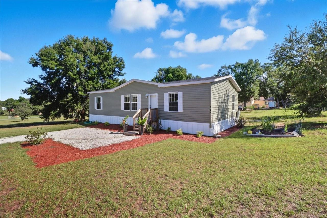 Located in adorable Floral City, halfway between Inverness and Brooksville, this 2022 doublewide is MOVE IN READY. Beautiful wood look vinyl floors give the great room a modern touch. The expansive kitchen has an apron sink and huge island with bookshelves and pillar legs, making it feel custom. The 10x20 shed sits on a slab, and there is plenty of space for your animal friends and anything else you'd like to add since there are no restrictions or HOA! The Rails to Trails bike path is just around the corner, and a great disc golf course at Floral City Park is a couple of streets over.