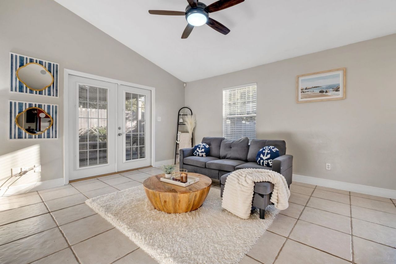 Nestled in the desirable Dry Creek Run community, this beautifully maintained single-story home offers the perfect blend of comfort and style. Step inside to soaring ceilings, a bright and airy open-concept family and dining area, and a well-appointed kitchen, ideal for entertaining. The generously sized bedrooms provide ample storage, while the inside utility room adds convenience to daily living. Retreat to the primary suite, complete with a walk-in closet, double vanity, and an oversized spa-like jetted tub/shower combo, a perfect way to unwind after a long day. Additionally, the converted garage serves as a versatile bonus room or extra bedroom. An incredible opportunity for buyers looking for both comfort and space.
